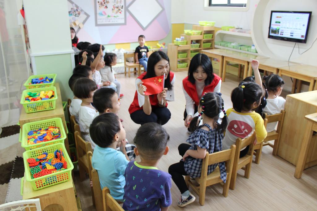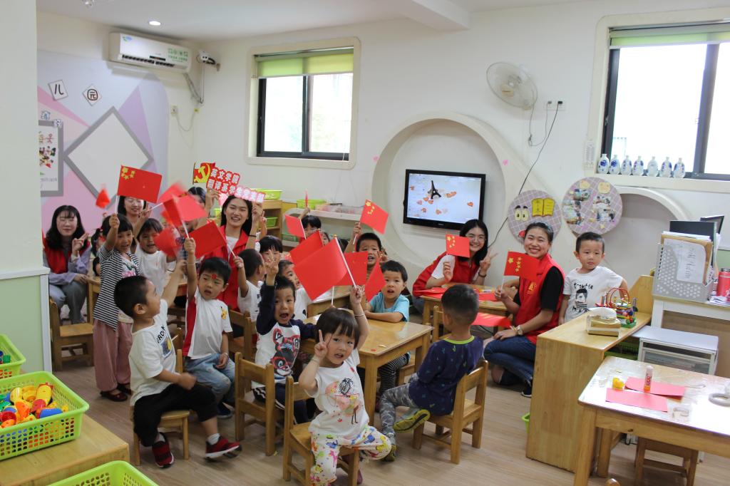活动开始前,员工党员们给小朋友们准备了小牧童闯关、刘胡兰等经典红色小故事,希望小朋友们传承先辈不怕牺牲、顽强拼搏、勇于胜利的革命精神。其后,员工党员们带领小朋友们认识了国旗,知道国旗为什么是红色的,五颗星星代表了什么等基本知识。最后,小朋友们在员工党员们的带领下,开始制作国旗,在小朋友们的剪剪贴贴过程中,鲜艳的五星红旗和小朋友们的可爱笑脸交相辉映,构成了一幅美丽的画卷。
