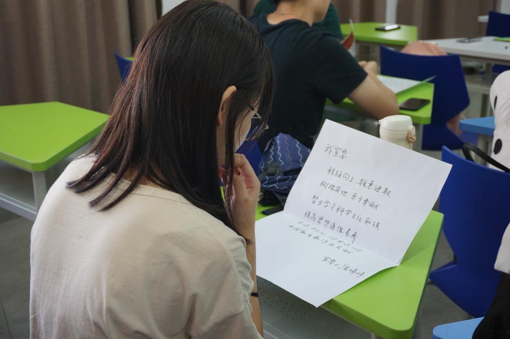 其后,翻译系员工党支部书记对本次活动进行总结,她讲到表达爱国的方式有很多种,无论是投身实践学习还是志愿参与活动,我们都应当拥护中国共产党的领导,爱国爱党。青年党员应心怀梦想,勇于追求,勤奋工作,通过点滴积累向着理想不断前进,这就是我们表达爱国主义情感的最切实的行动。大家纷纷表示,将不辱使命,勇于担当,用实际行动为新中国成立70周年献礼,用青春和汗水为中华民族伟大复兴做出自己的贡献!