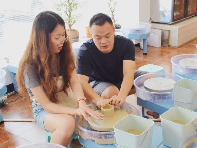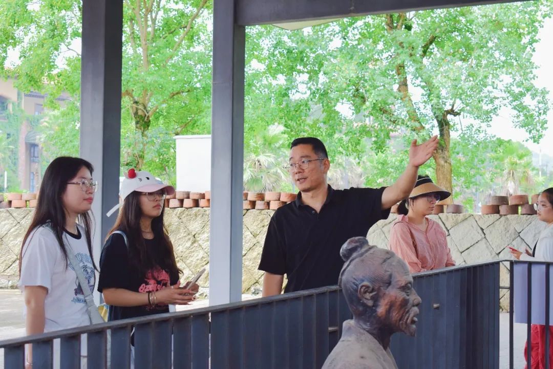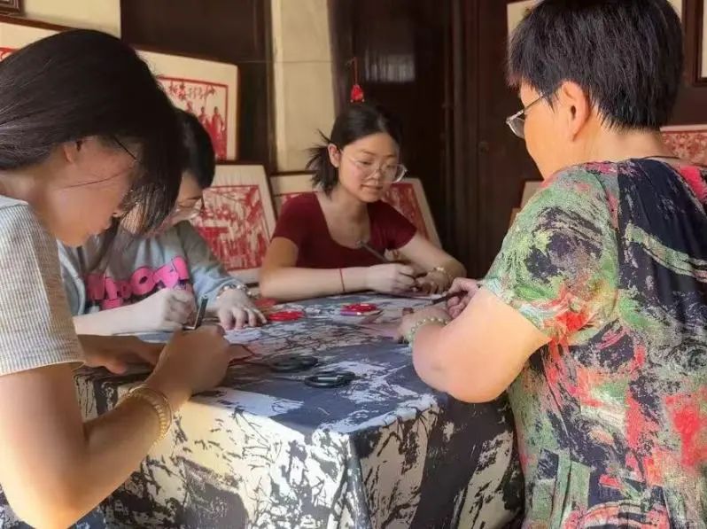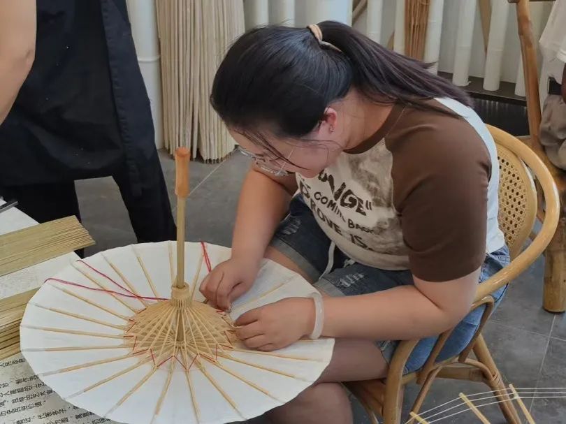 在实践中,同学们深入各地的非遗传承地,与非遗传承人面对面交流,亲身体验非遗技艺的独特魅力。在武义县溪里村婺州窑艺术馆,同学们触摸千年窑土的温度,倾听历史回响,并在非遗传承人的指导下亲手拉坯上釉,见证这一抔泥土在新时代焕发的璀璨新生;在余杭区纸伞馆,同学们随着伞艺师傅学习穿花绳、劈伞骨,于每道工序间,细品纸伞工艺的温婉与精妙;在桐庐华金娟剪纸艺术工作室,同学们目睹了剪纸艺术的灵动与细腻,纸片在传承人手中翻飞,不一会儿,一幅栩栩如生的剪纸作品便呈现在大家眼前。