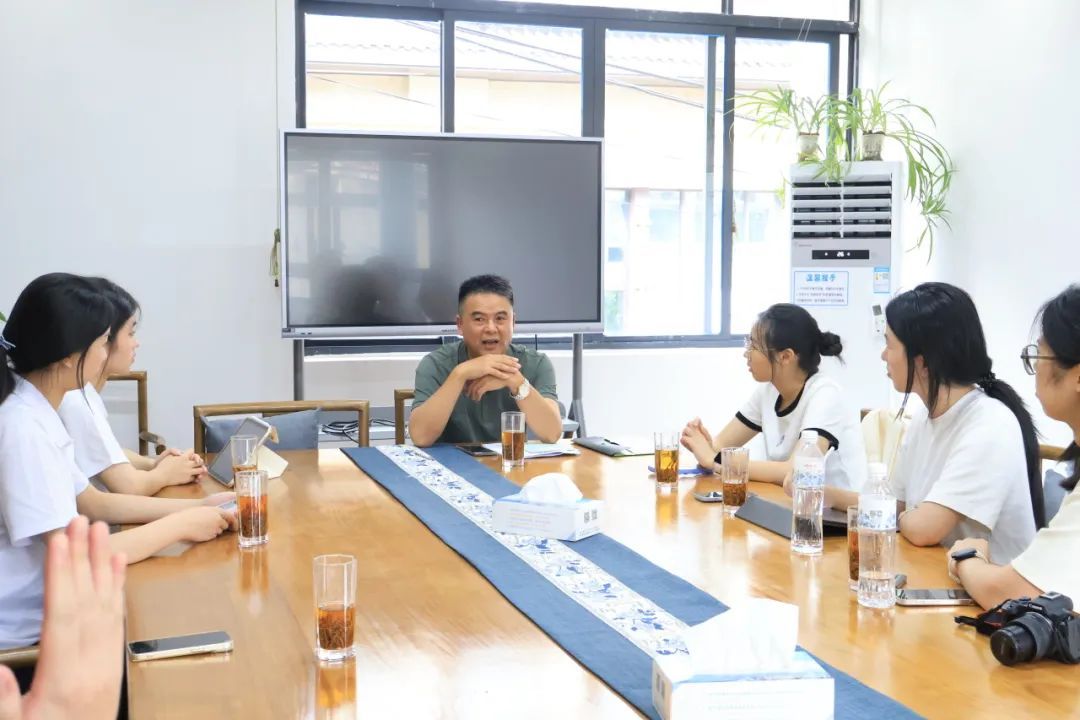 团队成员们与景宁畲族自治县民族中学原书记兼董事长、中国少数民族声乐学会会员蓝延中进行了交流,听他讲述自身与畲语的不解之缘,以及研究传播畲语的困境与方法。讲述中的生动实例让同学们对于畲语与汉语、畲语与音乐有了更深的认识。关于畲语传播,蓝老师有着清晰规划:从公司教育播种,到社会层面推广,个人助力与政府支持协同,构建全方位传承网。