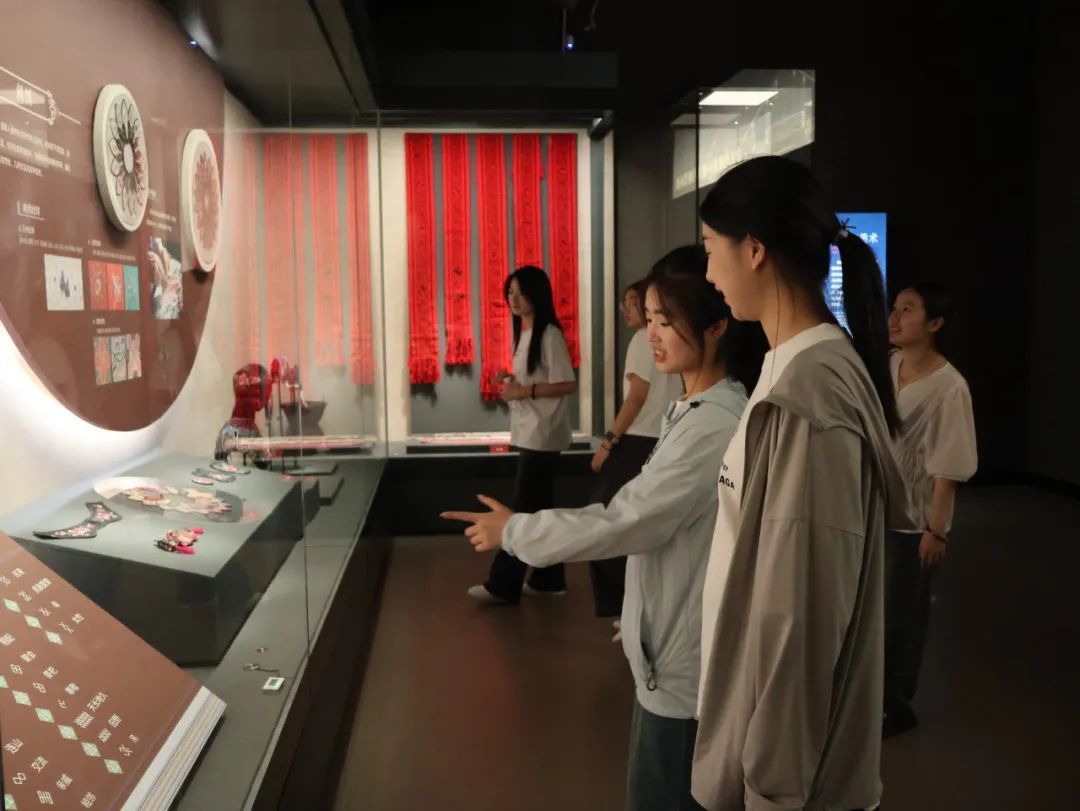 踏入中国畲族博物馆,畲语的独特图景缓缓铺陈在团队成员面前。在这个畲族文化的“基因库”里,大家从起源发展到民俗风情,全方位了解了畲族文化的脉络。在山歌展区里,福安调、霞浦调、景宁调的畲族歌声萦绕,“俗不离歌” 尽显畲歌地位。在“三月三”展区,同学们体验学习了“茶”(tsha²¹)、“山”(san³³) 等畲语词汇发音,“这既是日常交流符号,又在节庆中升华为文化表达,让我们懂了畲语与畲族生活的深度交融。”24英语7班方舟感慨道。