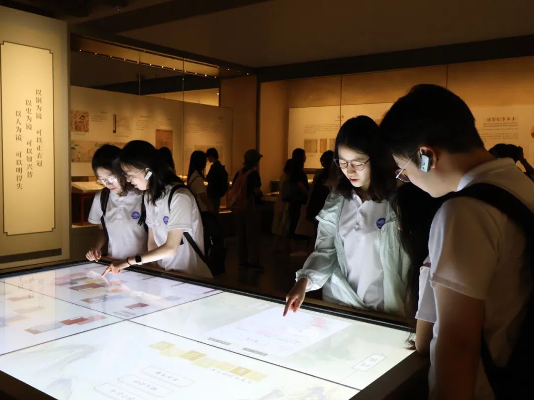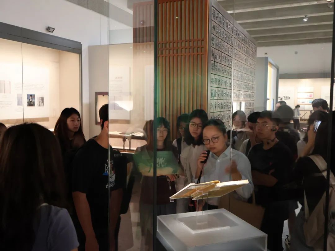 队员们走进杭州国家版本馆(文润阁),听讲解员从“何为版本”的概念讲起,细数国家版本的发展脉络——泛黄的典籍、规整的刻本、迭代的校注,恰似事物发展进程中的一帧帧截屏,清晰勾勒出文化的传承轨迹。队员们先后参观了“文献之邦——江南版本文化概览”展厅、“丹青汗青两相照——任道斌捐赠学术版本展”以及“云山浙水——朱维明捐赠作品展”,感受版本文化的丰厚内涵,体会文化传承者的赤子情怀。“作为外语专业的学子,我们既要读懂典籍里的‘老版本’,从文明根脉中汲取智慧;更要传播符合当今时代浪潮的‘新版本’,用多元语言讲好中国故事,让源远流长的文明焕发新的生机。”浙外威廉体育2023级英语(师范)专业的於星妍说。