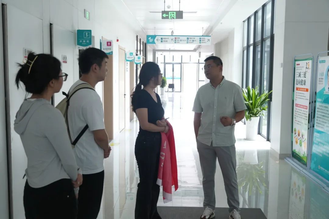 实践团首站抵达岭下镇卫生院,经理带领参观医疗设施,详解“楼上养老、楼下看病”模式——养老服务中心与卫生院同楼,老人乘电梯即可就诊,家庭医生签约率超九成。