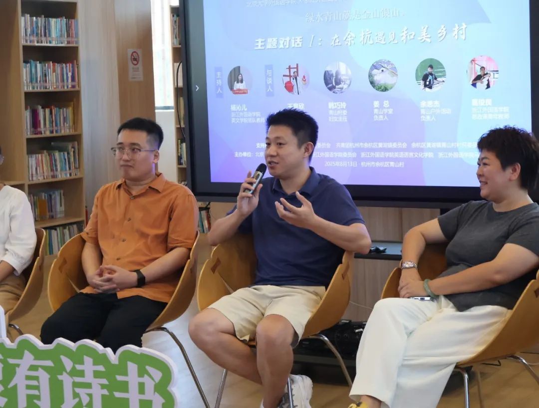 踏入青山村,脚下是宽阔洁净的乡路,眼前是雅致错落的屋舍,瞬间打破了我对于乡村的固有印象。融设计图书馆内的多元创意与自然公司里的清新意趣,更让人惊叹于新老村民对传统技艺的守正创新,以及对自然馈赠的珍视守护。乡村之行中,浙外同学沿途分享的本土乡情、座谈会上源于实践的真知灼见,则让我对浙江乡村振兴的独特成就有了更深刻的认知与感悟。
