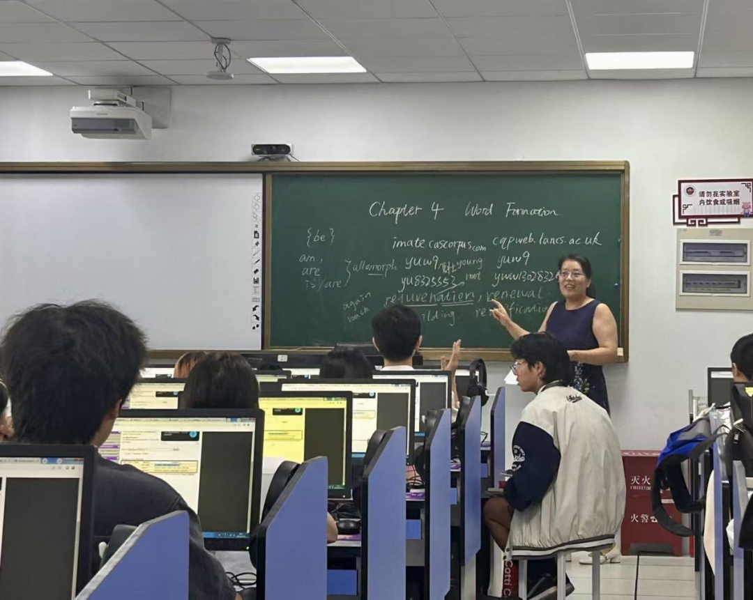 课后,柴改英与郁伟伟进行了亲切而深入的交流,她对任课教师的专业素养、翻转课堂的授课模式以及将最新语料库引入课堂教学的做法予以充分肯定,并就课程内容的进一步优化与深化提出了建设性意见。
