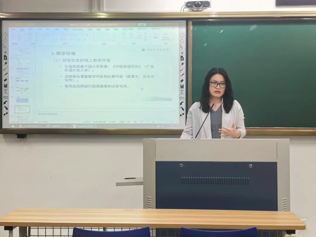 威廉体育经理邢富坤、学术副经理赵歆、外语教育系学科专业负责人常俊跃(线上)、教学督导陆海霞等参加了活动,校教师教学发展中心、教学检测评估中心副主任陶伟莅临指导,共同进行了现场点评。