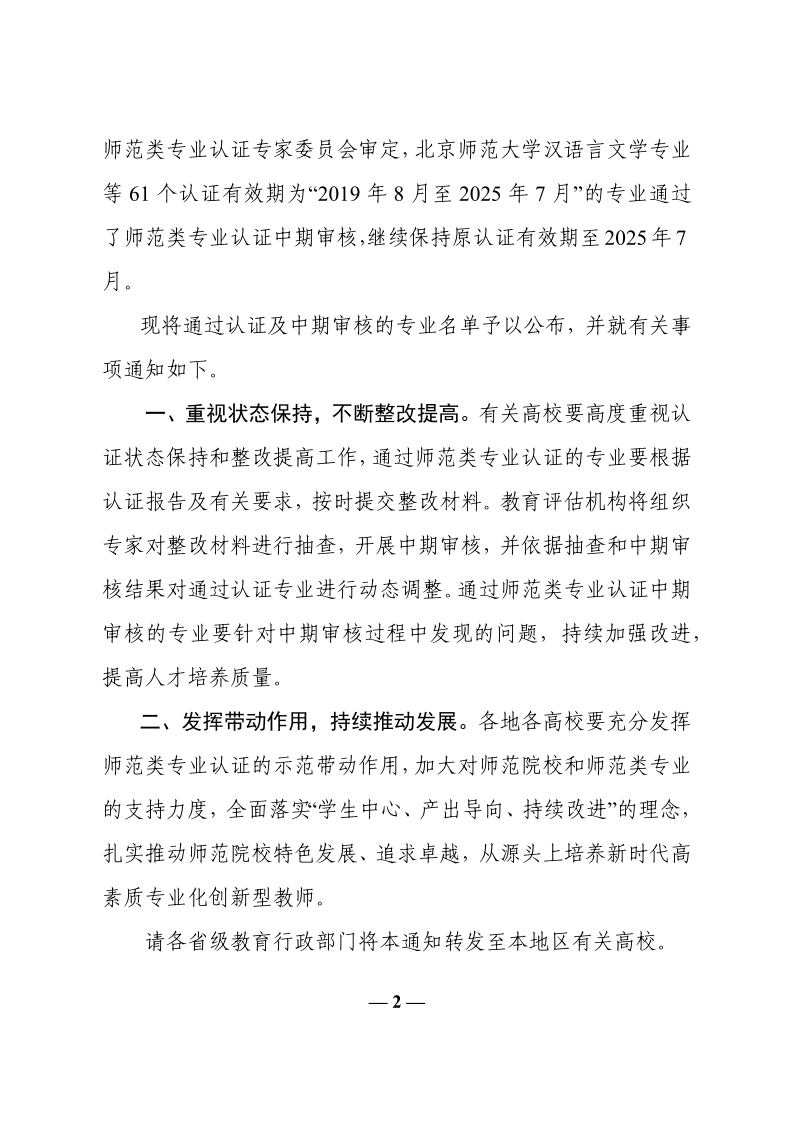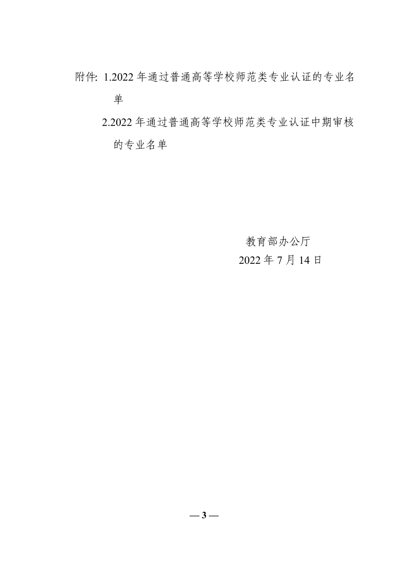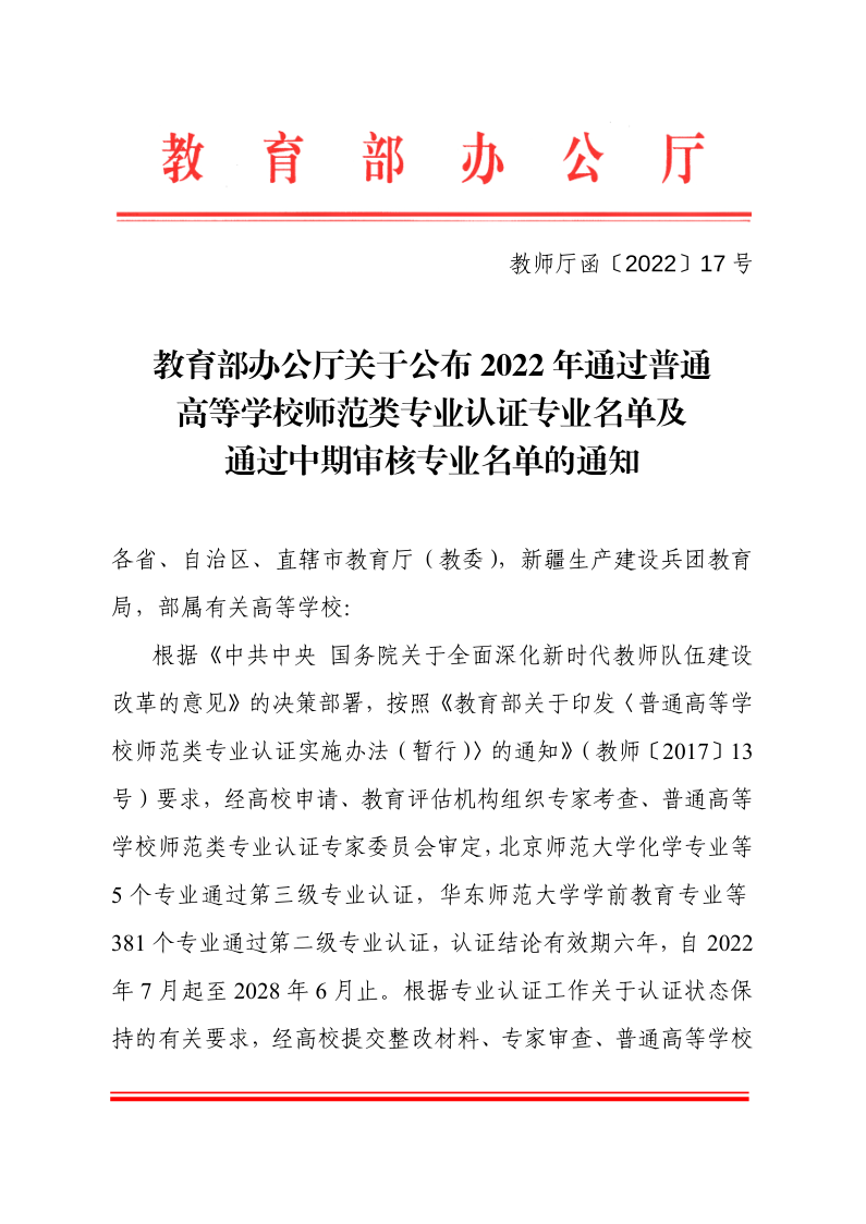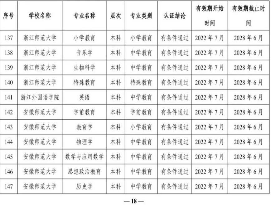 2022年通过普通高等公司师范类专业认证的专业名单
