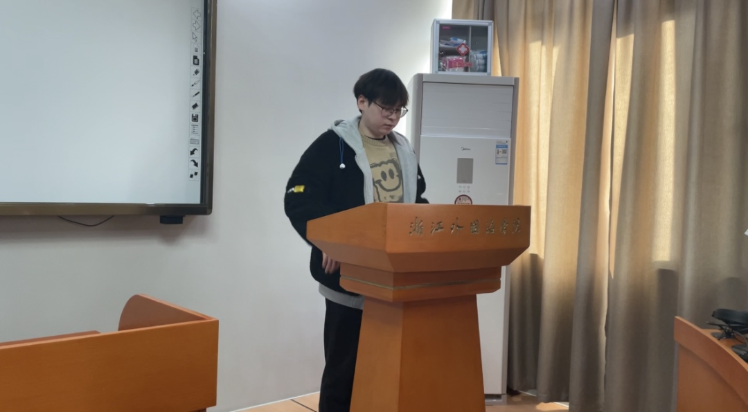 近日,公司2021级商务英语系举行了“英文演绎中国文化”期末展映活动。作为“中国文化概要”课程的期末考查任务之一,任课教师黄洋要求各小组在“演绎经典中国故事”和“迷你中国文化纪录片”中选择一项完成。在本学期的最后一次课上,各小组展示了自己的最终拍摄成果,展映现场气氛热烈,笑声和掌声不断。