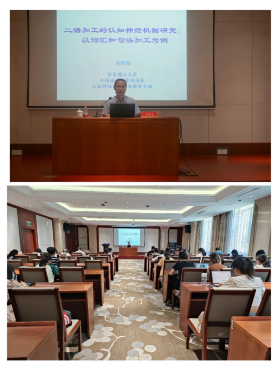 韦晓保在分析当前语言学研究发展的两个趋势基础上,重点从词汇和句法加工两个角度分析中国二语学习者语言加工的认知神经机制,其中包括,中国成人学习者外语词汇习得的神经机制研究和中国学习者二语数、性违反的认知神经机制研究。讲座最后,韦晓保基于国外“大脑语义地图(The Brain Dictionary)”的最新研究成果,分享了在运用功能磁共振成像技术(fMRI)开展词汇加工研究方面的一些想法。