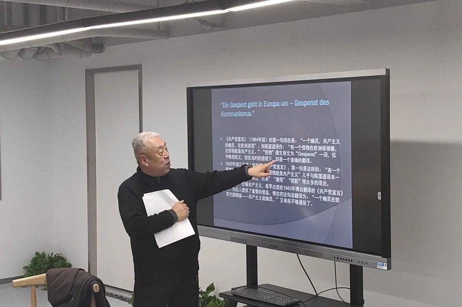 范捷平用自己多年前在电影中饰演陈望道角色的故事引出了“一本小书改变了中国”的话题。通过陈望道翻译《共产党宣言》的故事,范捷平启示同学们“语言可以改变中国,语言可以改变世界。翻译及其传播的重要性就在这里。”