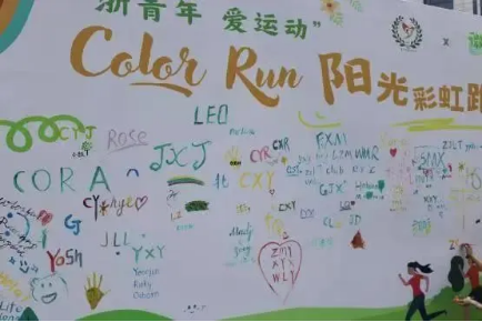 阳光彩虹跑,是一场色彩的盛宴,是一首青春的赞歌。同学们在白色T恤上绘制出绚烂的图案,在各个站点参与趣味盎然的小游戏,在跑道上挥洒汗水,每一笔、每一步都充满创意与活力。打卡墙上,大家留下自己的名字,用色彩和热情点缀这场盛宴。阳光彩虹跑为同学们创造了一段难以忘怀的青春记忆,让大家在欢笑中感受生活的绚丽多彩与无限可能。