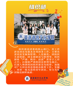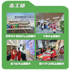 威廉体育团委内设办公室、组织部、宣传部、创新实践部、志工部五大部门。每个部门各司其职又相互配合,是公司开展团学工作的得力助手。