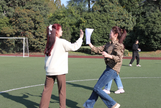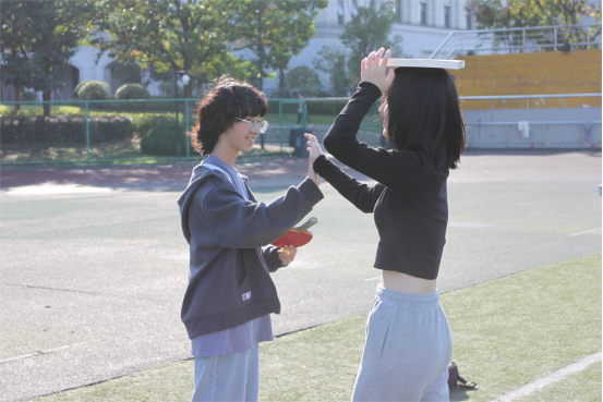 让我们将镜头转向另一边,接力传纸正如火如荼地进行中。只见队员们将纸张置于手掌,在旋转身体的过程中控制纸张不掉落,凭借团队默契顺利通过了挑战。