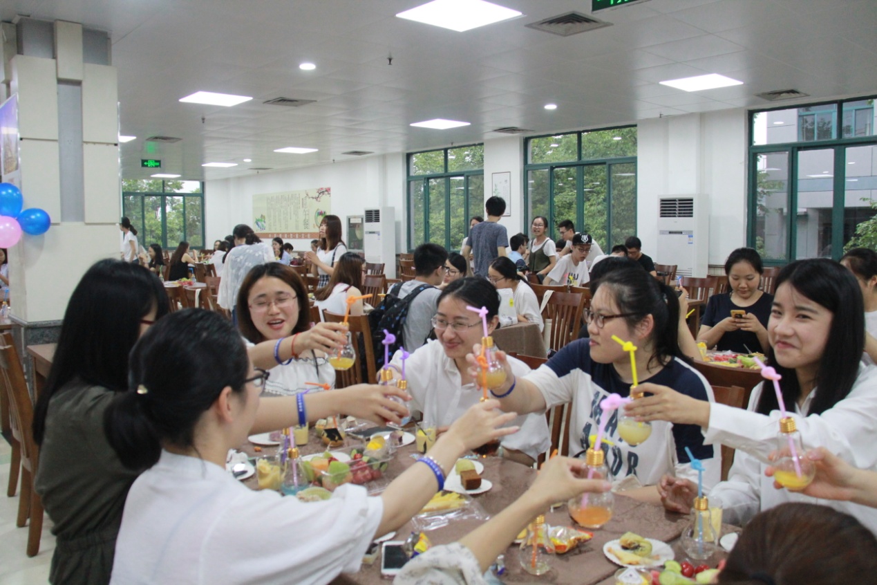 6月21日晚上6点30分,2017届毕业生欢送会在和香食堂二楼的一阵欢快的音乐声中正式开始。毕业生们怀着复杂的心情在威廉体育特制的帆布包上签下名字,挑选好工作人员精心准备的美食后入座。