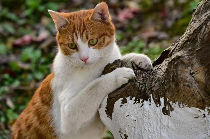慵懒的扒拉着树墩