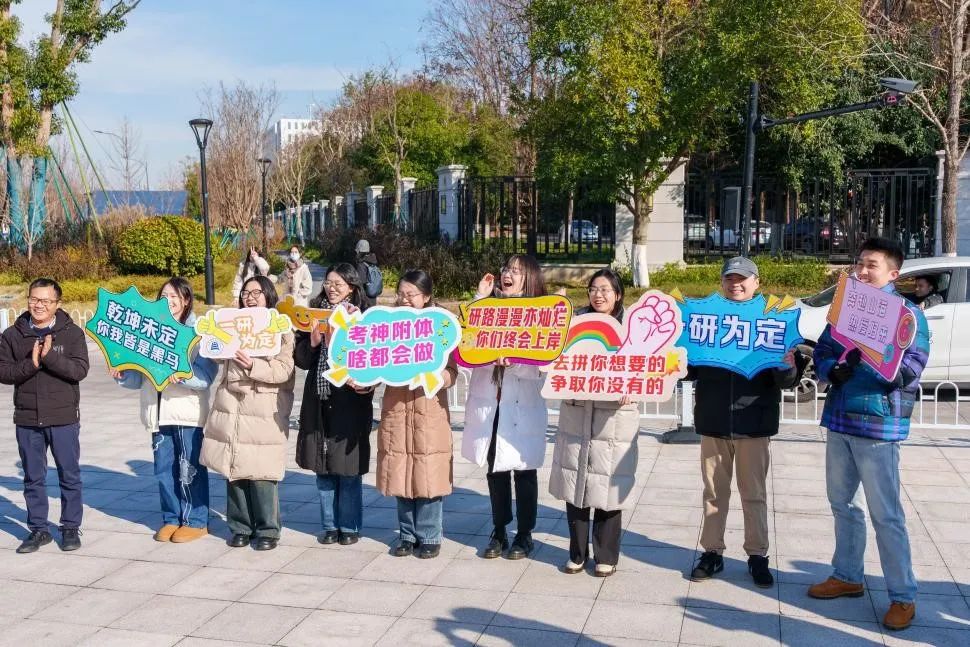 手举写着祝福的手持牌,大家用呐喊为考生们送上最热烈最真挚的祝福:“祝威廉体育2020级的全体考生——一‘研’为定,定为研一!”一声声加油的呐喊,一句句关切的话语,一道道热切的目光,都承载着公司对考生满满的关爱。