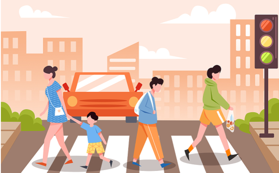 遵守交通规则,过马路时要看清交通信号灯,做到“红灯停,绿灯行”。