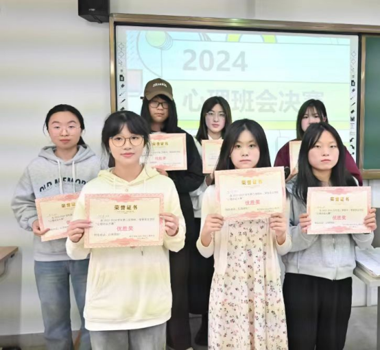 决赛中,各班心理委员以视频、多图、课程等多种方式生动展示心理班会开展情况、心理建设创新方案等。各班级主题班会独具特色,不仅有心理健康教育的理论性知识和理论性指导,又策划了丰富有趣的心理小活动,吸引了现场观众的眼球,更引发了他们对于心理健康重要性的深刻思考。