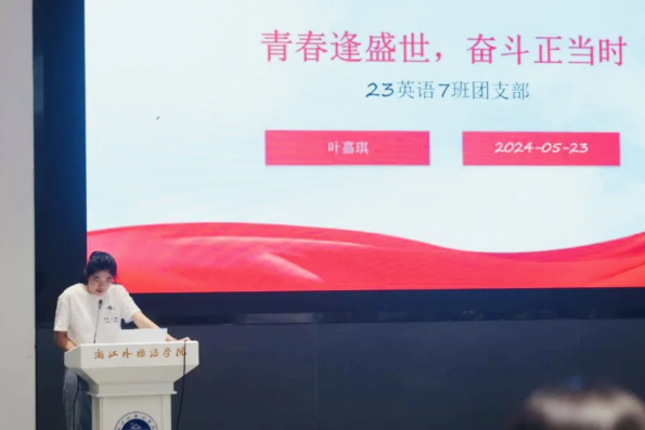 在“才艺展示”环节,各团支部团员青年们展示自主编排的精彩节目,以合唱、朗诵、舞蹈、情景剧等形式诠释着对主题的理解。23英师4班的合唱表演《剩下的盛夏》将团支部的点滴回忆娓娓道来,包含着成员们对彼此的深厚情谊,展现出团支部的团结与凝聚力。23英语7班的情景剧《追风逐梦》中的那句“我们都是追梦人”回荡在每个人心中,演绎出盛世之下青年人“有梦不觉天涯远,扬帆起航再出发”的斗势。
