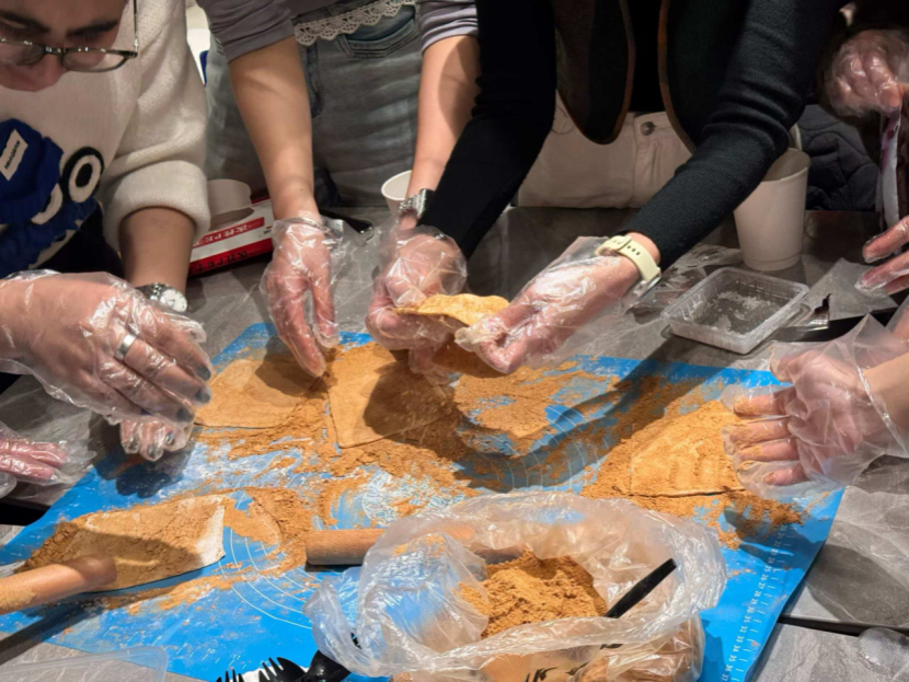 本次活动,令我深切体会到美食作为文化载体的独特价值。在一起包裹红豆泥、撒黄豆粉的过程中,不仅完成了传统小吃的技艺传递,更构建起跨越国界的文化对话桥梁。当不同文化背景的参与者认真聆听“驴打滚”的命名渊源与制作工艺并产生浓厚兴趣时,我意识到这种具身化的文化体验远比理论说教更能促进文明互鉴。这场以食物为媒介的交际活动印证了:文化共情往往诞生于共同创造的时刻。指尖流转的黄豆粉与唇齿间的香甜,恰似跨文化理解最生动的注脚,让我们在协作中自然领悟了“和而不同”的深刻内涵。