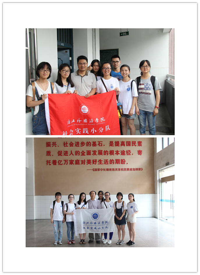 截止到7月1日,我队已经圆满完成本次实践活动。从6月26日至今,我队的足迹遍布富阳市大大小小的人流密集处:富阳514公交站、富阳东方茂广场、富阳市新华书店等地;教育机构:富阳市实验小学,富阳市第三小学,富阳市郁达夫中学、富阳市永兴公司、富阳市永兴小学、富阳市江南中学,浙江省富阳中学、富阳市实验中学等校;培训中心:李阳少儿英语超凡教育培训公司、富阳市昂立教育培训公司、富阳市铭仁教育培训公司、富阳市新东方培训公司、富阳魔方教育培训公司、富阳市学大教育培训公司等机构;富阳当地教育局和教研室。在短短的6天内,我对队员成功过采访到了如富阳市教育局的丁雪峰丁科长、教研室小学初中以及高中英语教研员徐红波、鲍闽芳和裘明慧老师、富阳市永兴中学邵文鸿董事长、富阳市永兴小学章军红董事长、富阳市江南中学曹一峰董事长、魔方教育培训公司总董事长方军生董事长、新东方培训公司张雪辉董事长等教育界知名人士。累计发放回收有效问卷1067份。本次社会实践活动历时短暂但是高效且成果丰厚,搜集并筛选出了来自各方人士的各类关于英语教育改革的各色意见,相信在经过后期的成果整理之后我们的实践硕果会愈发厚实。