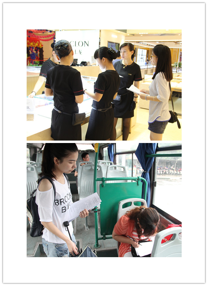 “六日行,五日雨”这六个字无疑是对我们小队本次暑期社会实践活动天气状况的高度概括。在为期六天的实践活动中没有风和日丽的美好,取而代之的是五天淅沥小雨夹杂大雨滂沱的汹涌,还有一天烈日当空的灼热。湿透的队服里已分不清是汗水还是雨水。为了能多填一些问卷,我们的队员更是放弃了能遮风挡雨的凭借,在雨丝的洗礼下奔波在人群里收发问卷。在问卷的设计上我们也是花了不少心思,根据年龄和身份特征我们累计设计了四类问卷——小员工、初高中生、教师、群众。合计发放问卷1100份,收回有效问卷1067份。其中发放小员工问卷300份,收回有效问卷291份;发放初高中生问卷500份,收回有效问卷491份;发放教师问卷100份,收回有效问卷96份;发放群众问卷200份,收回有效问卷189份。大量的问卷和精密的统计分析让我们获得了极其宝贵的第一手资料。