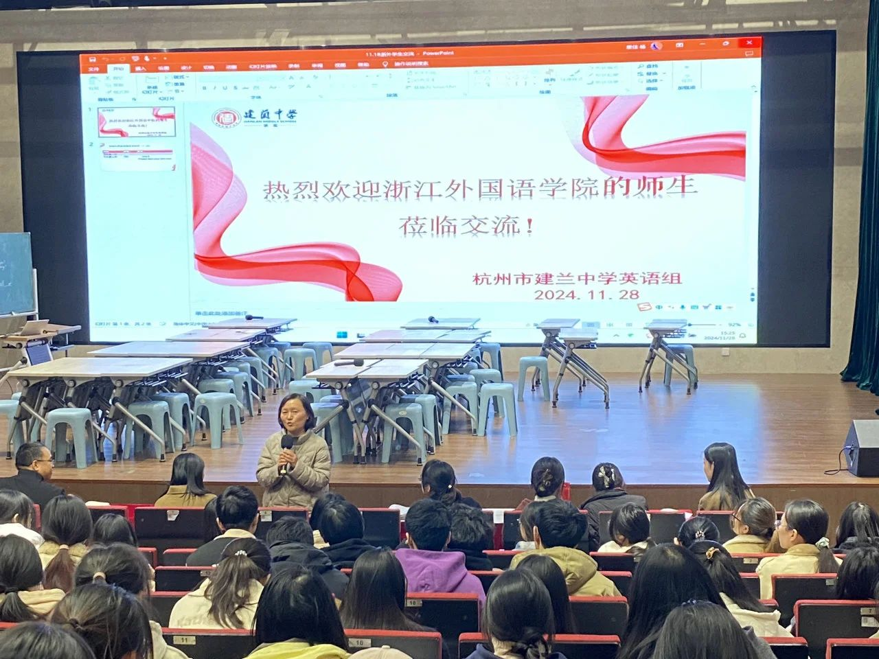 公开课结束后,两位老师向同学们介绍了各自的教学设计理念和心得反思。童红灯老师就两节公开课在课堂互动、课堂组织形式、课堂教学的各环节、教学内容等方面进行细致点评。最后,建兰中学李征董事长对此次观摩活动做总结,对浙外英语师范生的成长给予殷切期望。