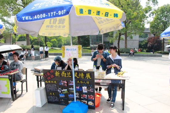 一曲《Young and Beautiful》带来的是 “粉墨登场”的青春年代,同学们在各个班级的展位前游览游戏:通过玩萝卜蹲游戏,同学们能够熟记新西兰的地名;卢比(印度货币)抱团则考验同学们的反应速度和计算能力;爱尔兰的美食令人垂涎三尺……同时,跳蚤市场上各色各样的物品也吸引了不少同学前来购买。