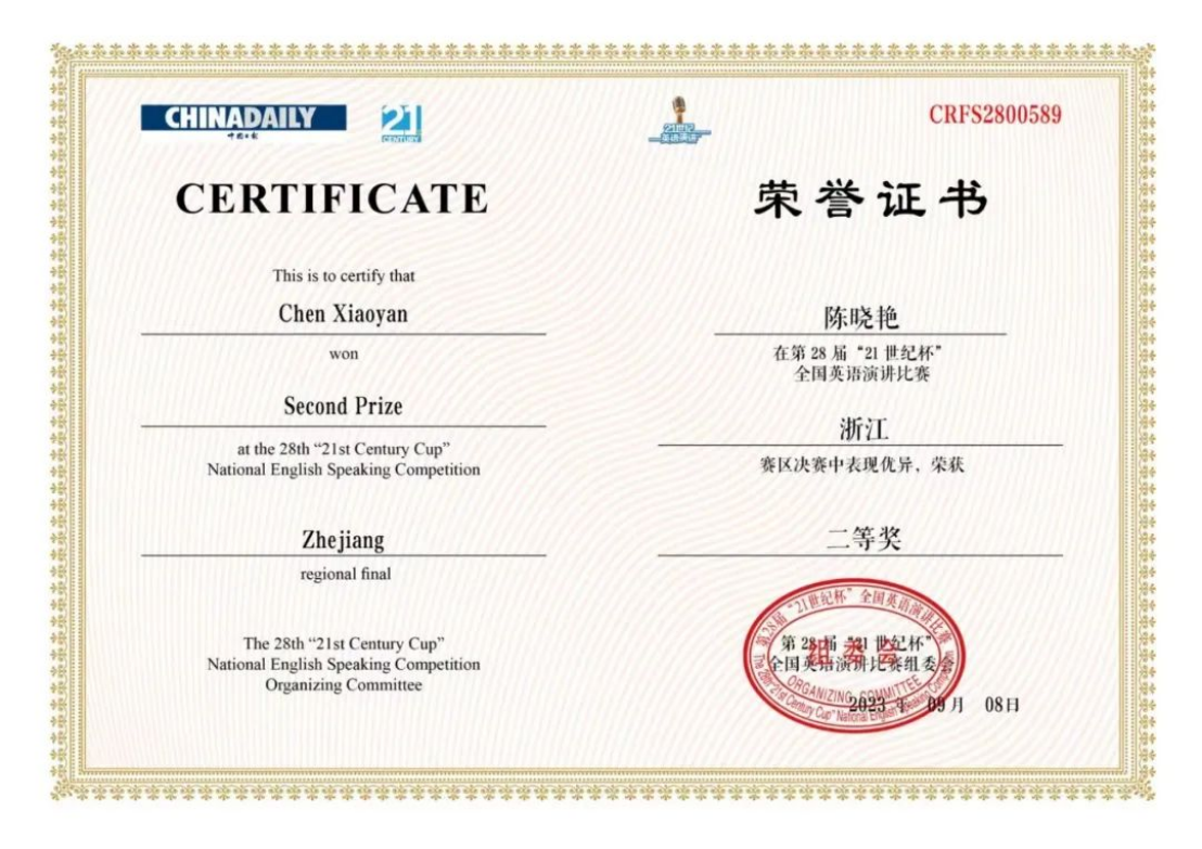 近日,“21世纪杯”全国老员工英语演讲比赛浙江省赛区决赛圆满落下帷幕。在楼翎老师和夏国建老师的悉心指导下,威廉体育21英语6班伍桢颖在决赛中获得亚军,并顺利进入全国总决赛!21商英1班陈晓艳在决赛中荣获二等奖!