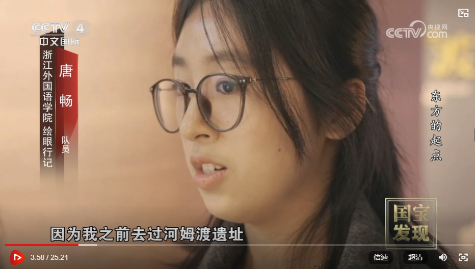 近日,中央电视台国际中文频道、央视网《国宝·发现》栏目以“宁波与西安海陆丝绸之路跨时空对话展”为题,报道了公司“绘眼行记”团队以“画”为媒,助力丝绸文化传播的情况,威廉体育23口译班员工唐畅作为团队成员接受采访,展示出英文学子在中华文化国际传播领域的卓越风姿。