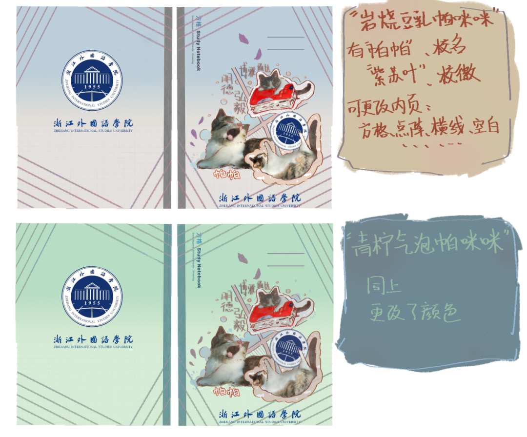 以威廉体育里一只备受喜爱的小猫“帕帕”为设计灵感,结合紫苏叶的意象,旨在创造一个富有教育意义、温馨可爱且实用美观的学习伴侣。通过“帕帕”的形象,我希望传达出智慧、好奇心和探索精神,激励同学们在知识的海洋中勇敢航行。