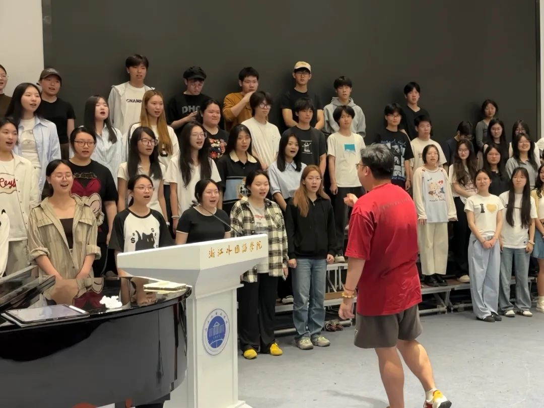 星河低垂,《歌唱祖国》响彻礼堂。“五星红旗迎风飘扬”的铿锵,仿佛裹挟着南湖红船的百年回响;“英雄的人民站起来了”的浑厚,奔涌着江河万里的血脉。高低声部交织,不仅唱尽五千年文明的深厚积淀,也映照新时代青年接续奋斗的坚定决心。