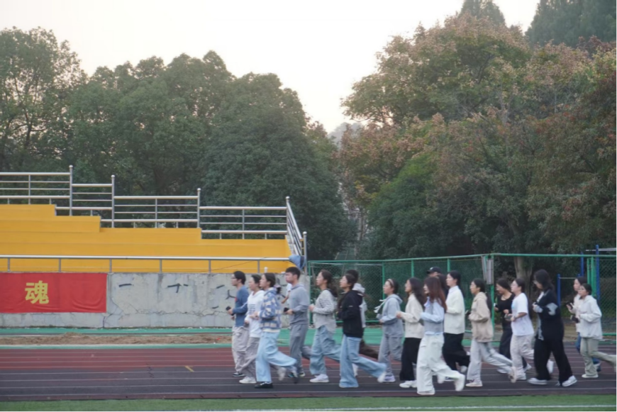大一的操场还蒙着晨雾,我攥着手机站在起点,连一公里都跑得气喘吁吁,脑子里只剩一个念头:“五圈什么时候才能结束?” 那时的晨跑,于我而言不过是一项不得不完成的“任务”,每一步都带着敷衍的抗拒。没想到,这场“被迫”的奔跑,让我认识了一群来自不同专业的朋友。我们踩着同样的晨光出发,跑不动时互相打气,跑完后并肩拉伸,原本枯燥的路程,因为有了彼此的陪伴,渐渐多了欢声笑语。大二,我接过了晨跑队的队长接力棒。我带着队员们跑过春的花香、夏的蝉鸣、秋的落叶、冬的霜雾,带着队员们和另一支晨跑队隔着跑道互道早安。晨读结束后和大家一起吃刚出锅的热豆浆和软乎乎的包子,一整天的心情都跟着变得暖洋洋的。如果有人问我,在大学里最值得骄傲的事是什么?我一定会毫不犹豫地说:“是每天迎着晨光奔跑的自己!” 那些在跑道上流过的汗、结下的友、磨出的韧劲,都成了我大学时光最珍贵的记忆。