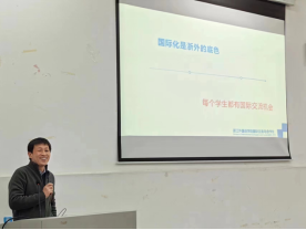 陶伟介绍活动的目的和流程,鼓励同学们明确目标、深入了解出国交流政策和项目,进而找准最适合自身需求的项目并提前做好准备。