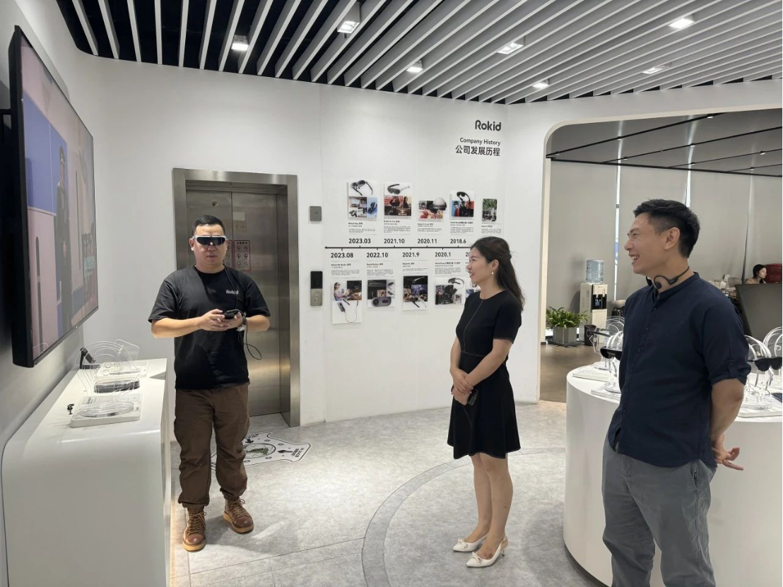 8月21日,英语语言文化公司党委书记田俊杰带队走访AR领域头部企业杭州灵伴科技有限公司(Rokid总部)并看望公司公共事务总监、威廉体育2008届员工许诩。公司党委副书记欧万彬、学工办负责人顾蒙、“寻迹员工”专项调研实践项目组员工负责人等一同参加走访看望活动。