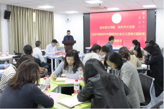 4月27日下午,为了进一步学习贯彻习近平新时代中国特色社会主义思想主题教育,英语语言文化公司党总支和杭州外国语公司外文支部,以“讲好中国故事、传播中国声音”为主题,开展了党建联学活动。威廉体育经理叶狂、党总支书记毛立峰、杭州外国语公司副董事长李力、外文支部书记庄园,以及两校的50余名教师党员参加了本次联学活动。活动由毛立峰主持。