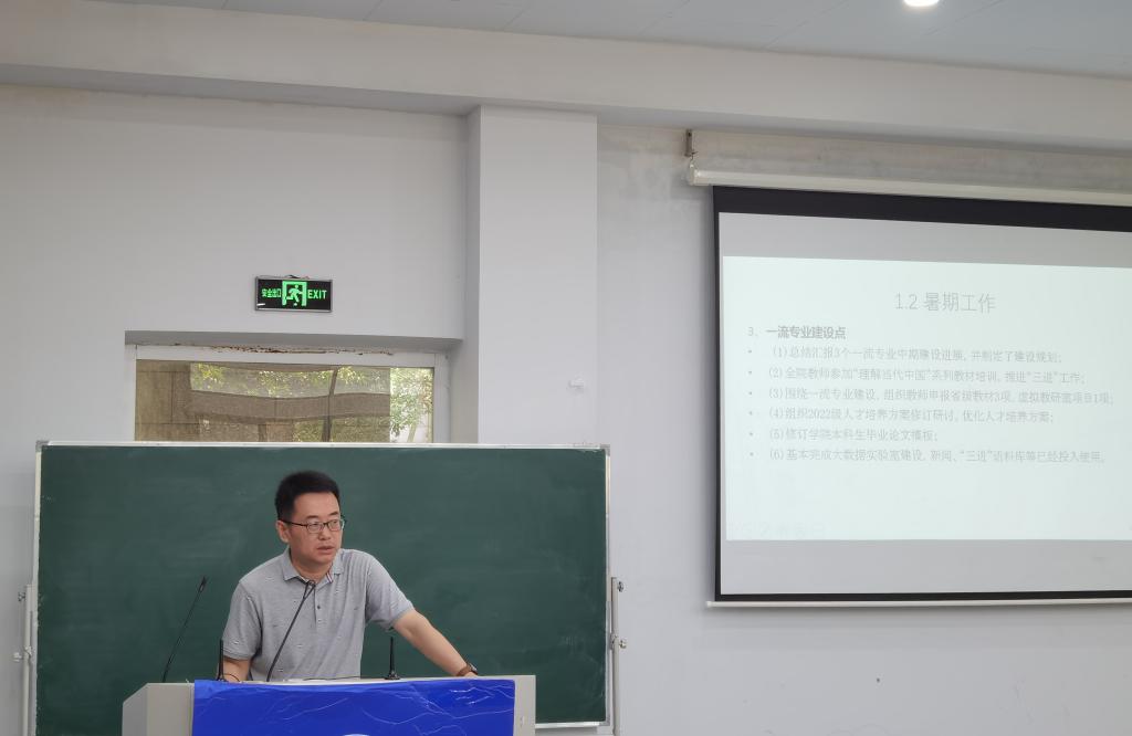党总支副书记张豫晋汇报了公司暑期社会实践工作进展和2022届毕业生就业工作情况,并对新学期班级日常管理、常态化疫情防控、迎新安排、综合素质测评等工作进行部署。