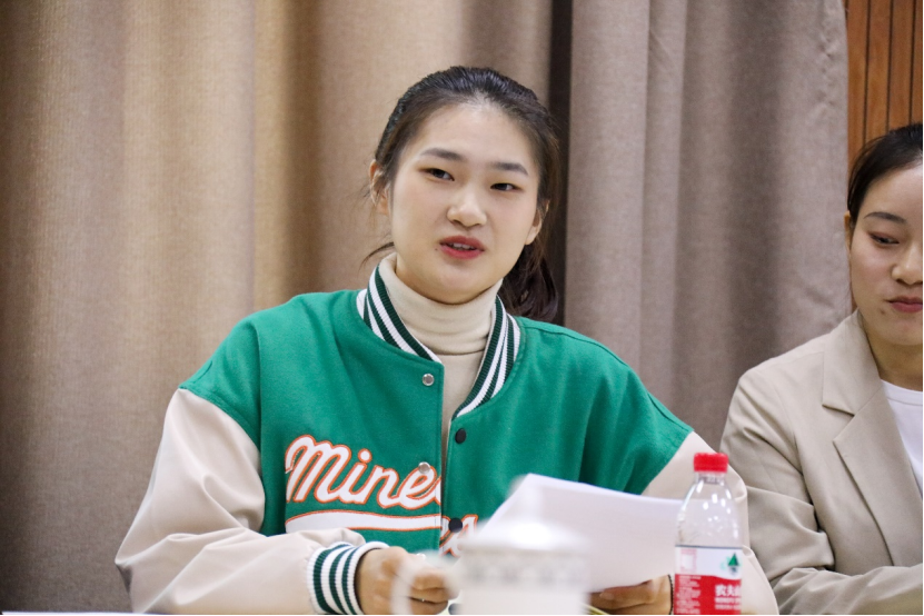 员工代表发言阶段,同学们分享了属于自己的少年初心故事:2020级隋泽洋同学将习近平总书记的青年精神与和山立志精神一同作为他成长发展道路上的座右铭,于和山立志,同和山共勉;翻译系支部的入党积极分子、2019级杨诺晗同学出生于红色氛围浓厚的“党员之家”,家人们的耳濡目染与榜样作用使她坚定了自己的理想信念,勇敢肩负起时代赋予的重任;翻译系支部的预备党员、2018级的张月欢同学是“青年学子学青年习近平”学习教育前置的受益人,经过老师的谆谆教诲和自己的静心思考,她守住初心于心间,做好规划于笔尖,及时行动,奋力追逐;2017级的翁奇蕊同学结合老员工活的每一个阶段,坚持做到了“知行合一”,即将圆梦继续深造;刚完成义务兵兵检和政审的余卿同学,分享了她在浙外的这四年以及个人职业规划,抒发将从军之志实现为报国之情的美好期盼;蔡晓莹同学在校认真学习,开拓视野,积累经验,于毕业季成功创业成立公司,切实投入到为人民和社会服务的工作中。