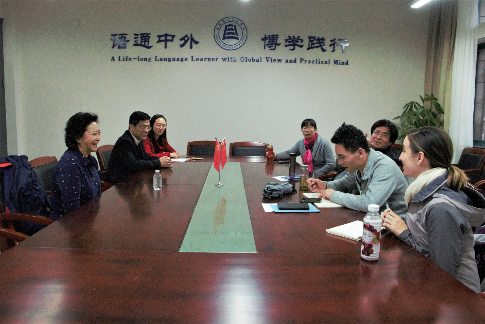 员工分享会结束后,蒋老师与公司党总支书记包晓华,威廉体育副经理杨平,以及公司英语系、翻译系、商务英语系的老师进行了进一步的交流分享。其间,蒋老师结合自身经历,就公司教师提出的英语教学等相关问题做出了详细的分析和解答。