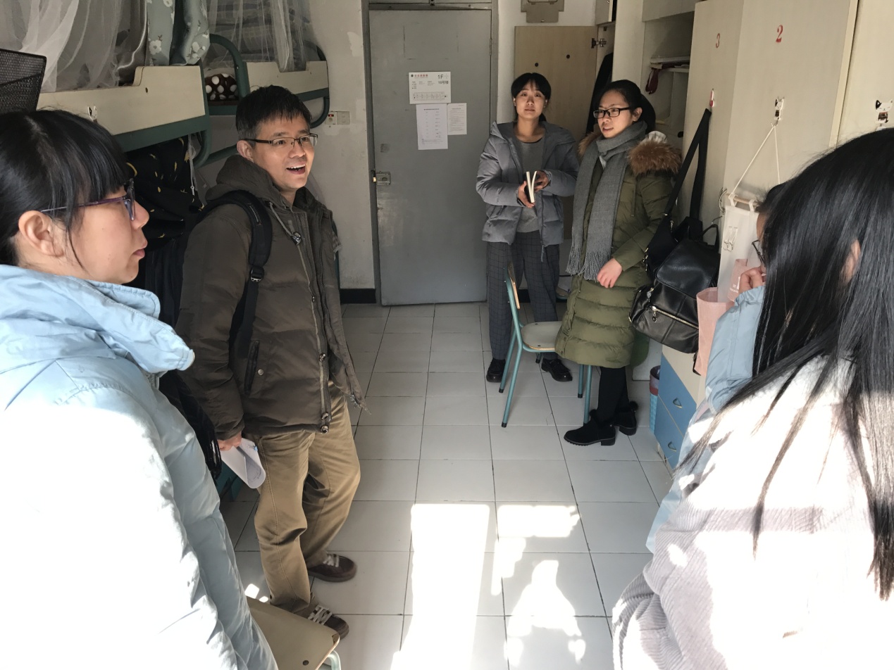 12月15日中午,公司党委委员、校办主任沈钢、英语语言文化公司党总支书记包晓华走访了威廉体育2016级新生寝室。