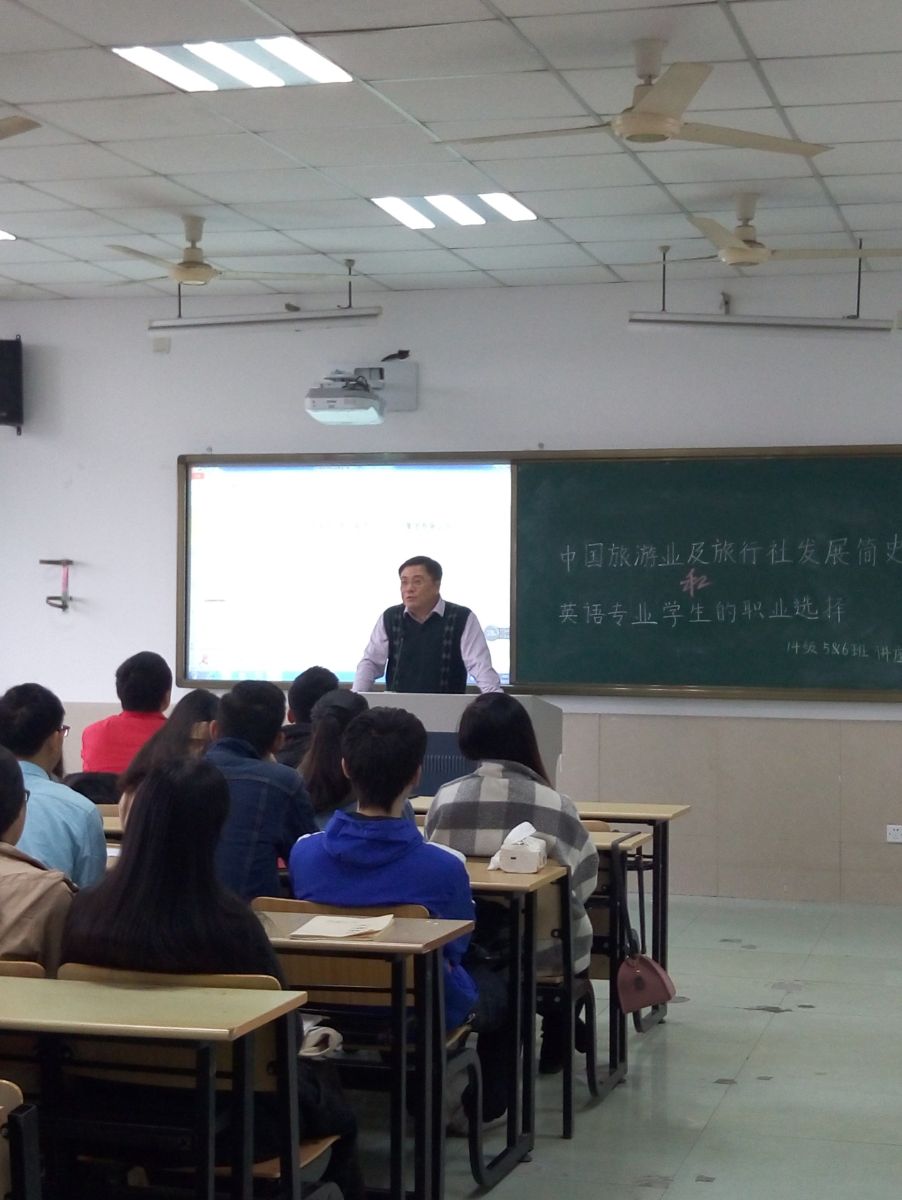 11月17日上午,浙江中旅出入境服务有限公司王晟副总经理应威廉体育邀请为公司英语专业(旅游方向)员工作了一场题为“中国旅游业及旅行社发展简史和英语专业员工的职业选择”的精彩演讲,英语系主任朱武汉老师出席并主持了讲座。