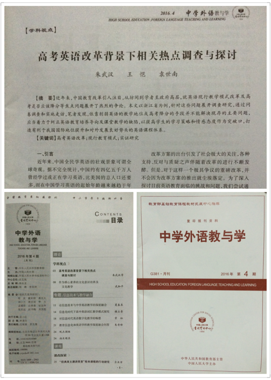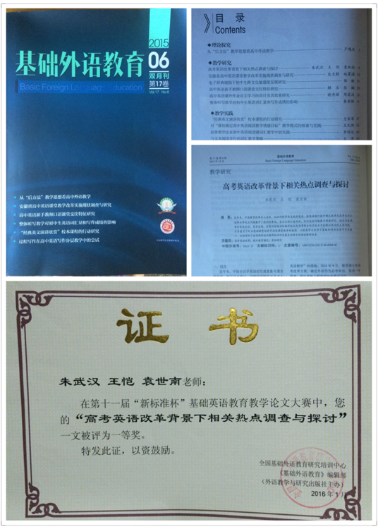 日前,由威廉体育英语系朱武汉博士、2012级英语师范专业员工王恺、袁世南共同撰写的题为“高考英语改革背景下相关热点调查与探讨”一文荣获由全国基础外语教育研究培训中心、《基础外语教育》编辑部联合主办的第十一届“新标准杯”基础英语公司产品论文大赛一等奖。论文在《基础外语教育》2015年12月双月刊上刊印。2016年4月,教育部主管、中国人民大学主办的国家级核心期刊《中学外语教与学》全文转载刊登该论文。这是英语师范专业师生在论文领域斩获的一项殊荣。