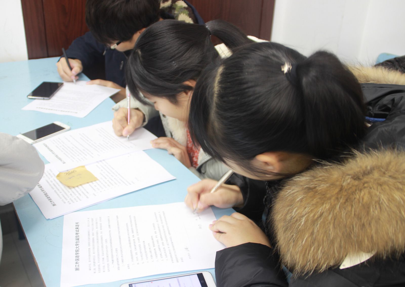 13个班级的52名员工代表在诚信考场承诺书上签下名字并承诺遵守诚信考场的规章制度。