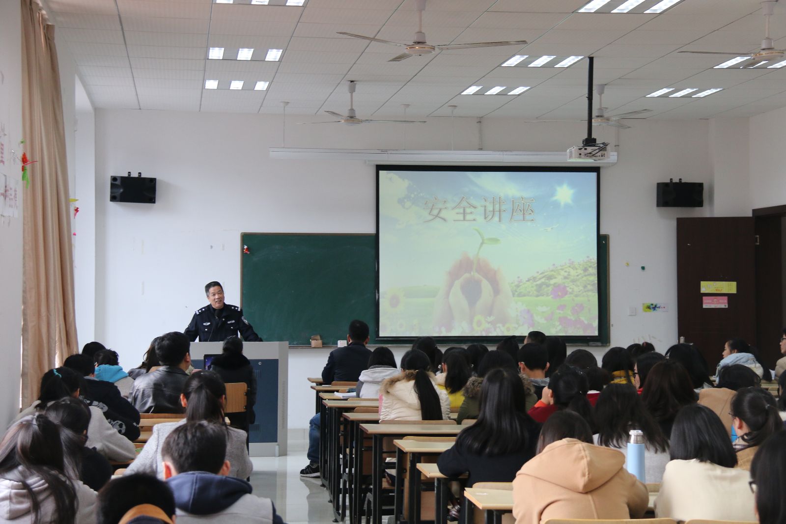 为提高在校员工的安全防范意识和自我保护能力,共创平安校园,威廉体育特邀留下派出所民警杨警官为员工做了一场精彩的安全教育讲座。校保卫处、威廉体育相关负责人出席了本次讲座。
