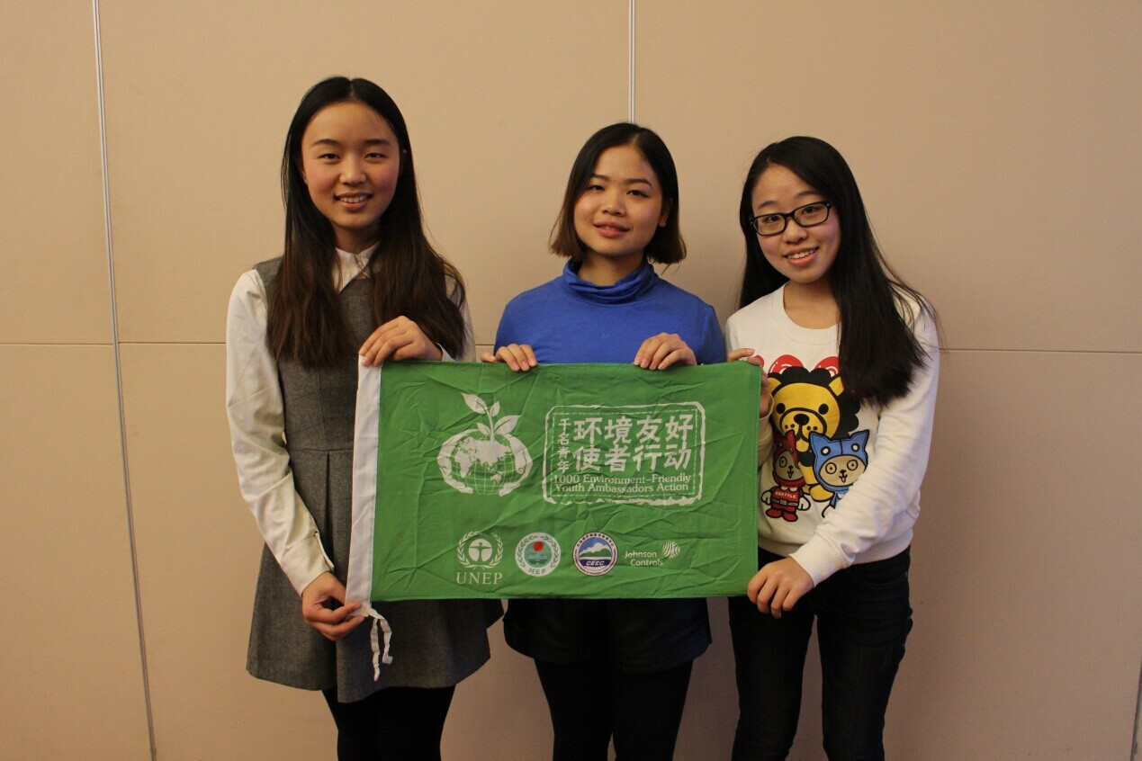 (图为公司青年环境友好使者张英(左一)与全国其他使者合照)