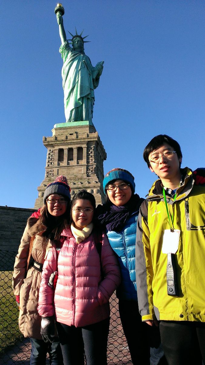 (感恩节与北京外交公司以及台湾的同学们在自由女神像的合照。)