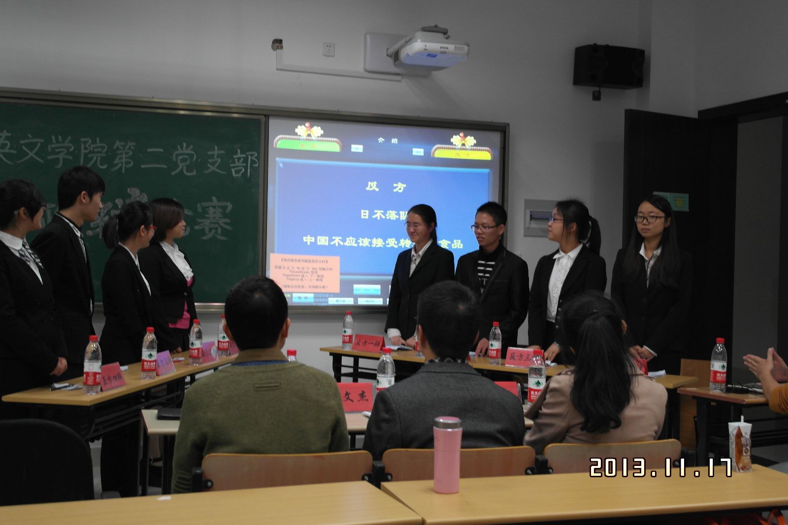 辩论赛的辩题结合当下时政热点,围绕“中国是否应该接受转基因食品”展开。正反双方通过立论陈述、攻辩、自由辩论等环节进行了激烈的唇枪舌剑,最终反方代表队略胜一筹,获得“优秀团队”的称号。正方代表队也获得了“优胜奖”。