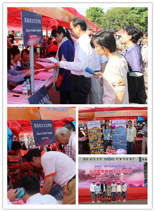 10月12日,由中共杭州市委宣传部、市社科联共同举办,拱墅区委区政府协办的“2013年杭州市社会科学普及周”活动开幕仪式在运河广场举行。威廉体育运河公示语实践团队和中小学幼儿英语教育实践团队代表杭州市外文学会参与了本次咨询服务活动。