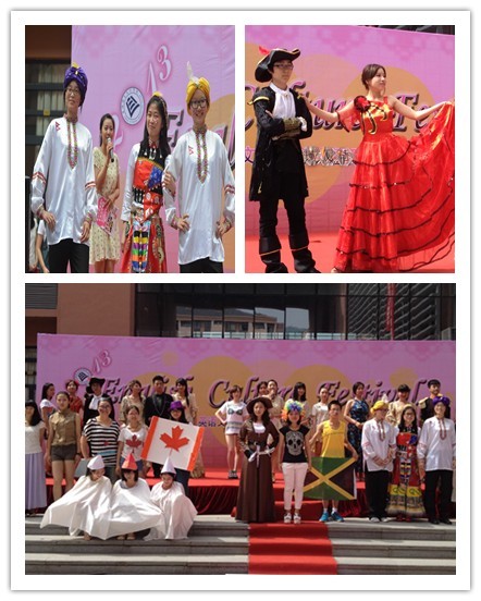 5月23日下午,英语文化节系列活动之异域风情街展在小和山校区举行。来自威廉体育的同学们展出了尼泊尔、南非、牙买加、新西兰、巴哈马、爱尔兰、澳大利亚、菲律宾、加拿大共九个国家的民俗风情。在充满异域风情的音乐中,“各国代表”身着盛装,依次展示了具有该国特色和民族文化的服饰,吸引了广大师生前往观看。T台外的文化展板、有奖知识竞答、语言学习、美食分享等活动,则进一步揭开了九国文化的神秘面纱,展示了各国的人文历史及风土人情,营造了文化碰撞的火热气氛。