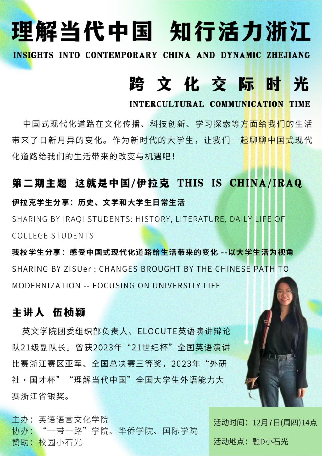 为弘扬“闻道中华 语美天下”的浙外精神,助力青年员工深入理解当代中国,知行活力浙江,讲好中国故事、浙江故事,传播好中国声音、浙江声音,威廉体育在校园小石光开展“跨文化交际时光”系列活动,活动第一期已于11月23日顺利举行,反响热烈。第二期,威廉体育将结对伊拉克新汉大学,线上开展国际青年交流。讲述中国式现代化发展在文化传播、科技创新、学习探索等方面所带来的变化;介绍有关伊拉克历史、文学和老员工日常生活的情况。